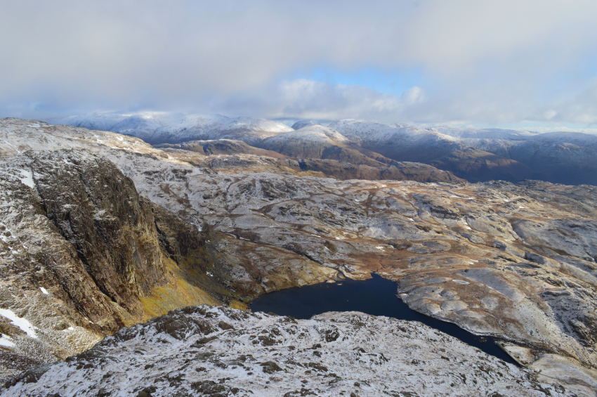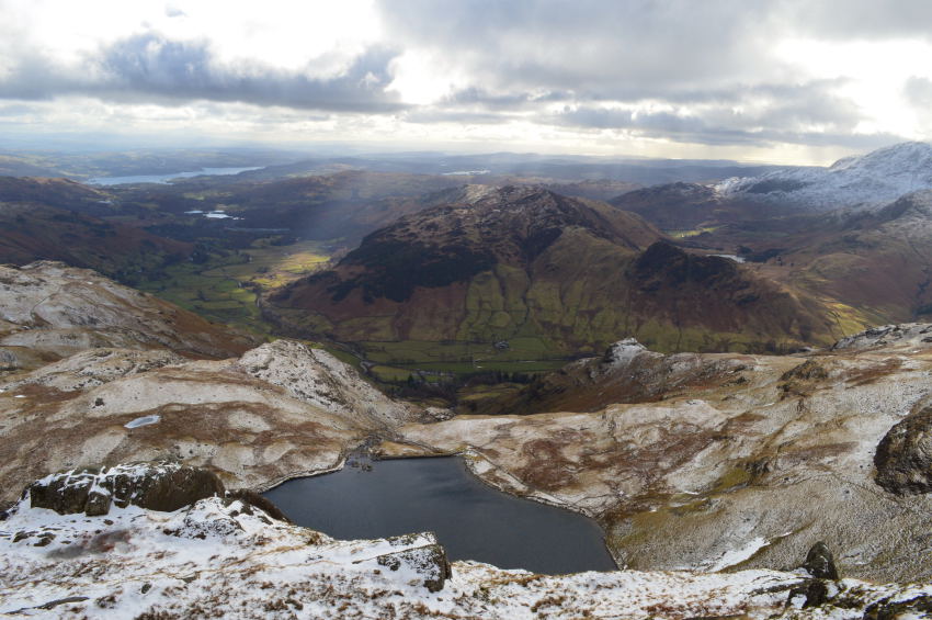 Views over Pavey Ark & Stickle Tarm from Harrison Stickle summit. |