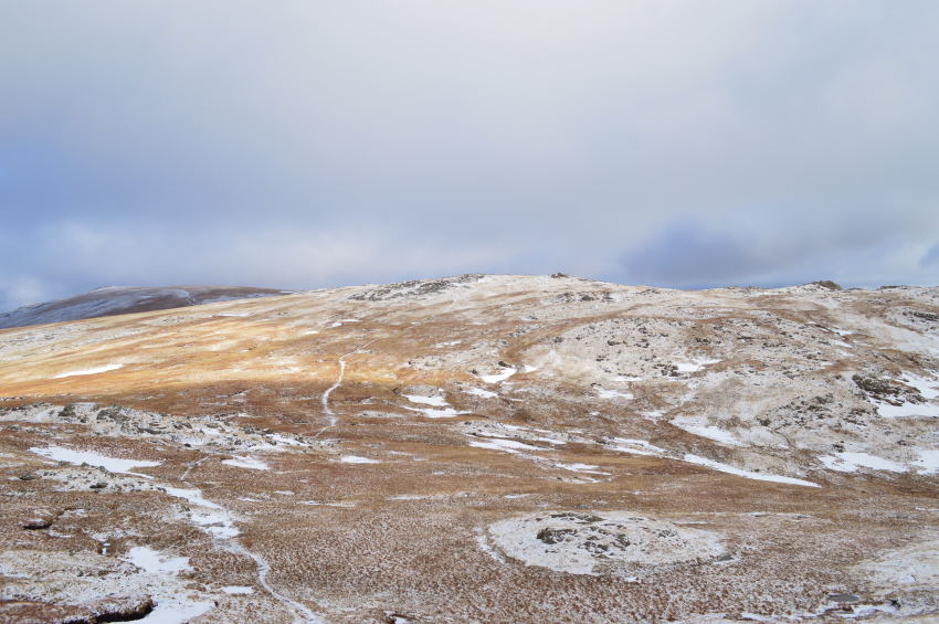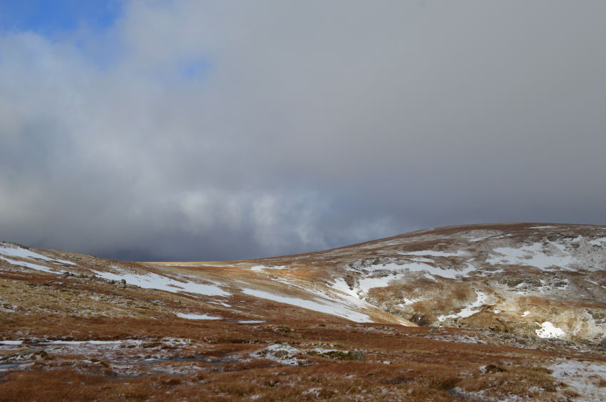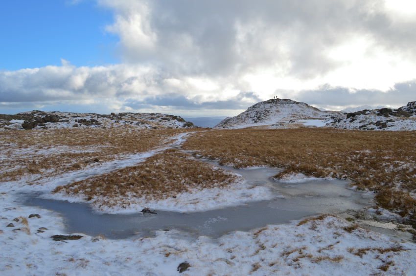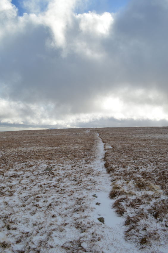 For the third time today I was in luck as I kept to a narrow path which ran centre left of the ridge, my crossing at times wasn't without the odd bog hop which saw me sink up to my heels yet despite this, I figured I had escaped much of the bog due to the thawing out.