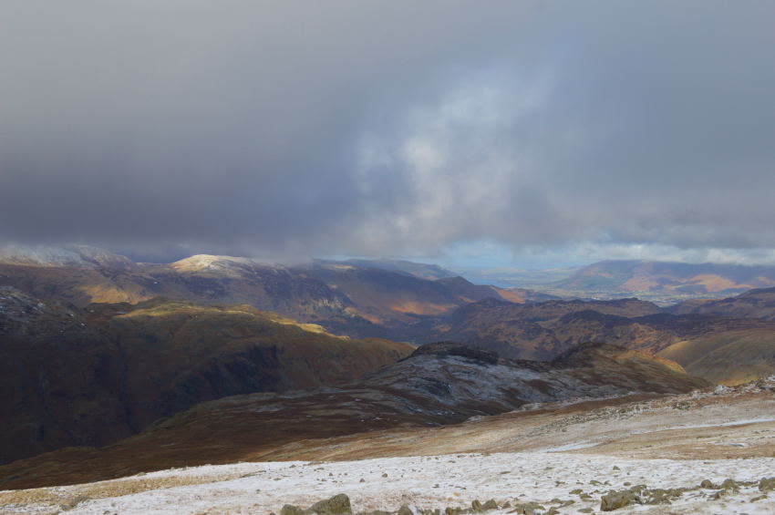 Here Nethermost Pike, Dollywagon Pike, Seat Sandal, Fairfield & Great Rigg bask in wall to wall sunshine, I however am still thanking my lucky stars I managed to avoid those snow showers just now. |