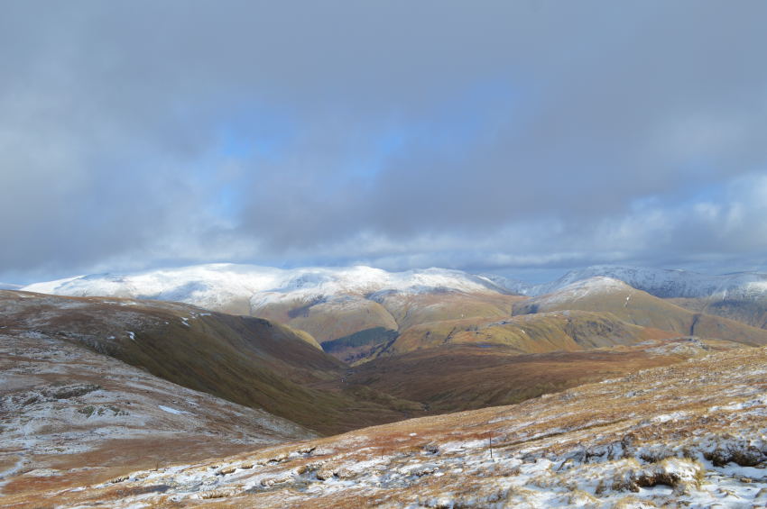 Views into Wythburn & Steel Fell with the Helvellyn ridge still enjoying a lenghty hint of sunshine. |