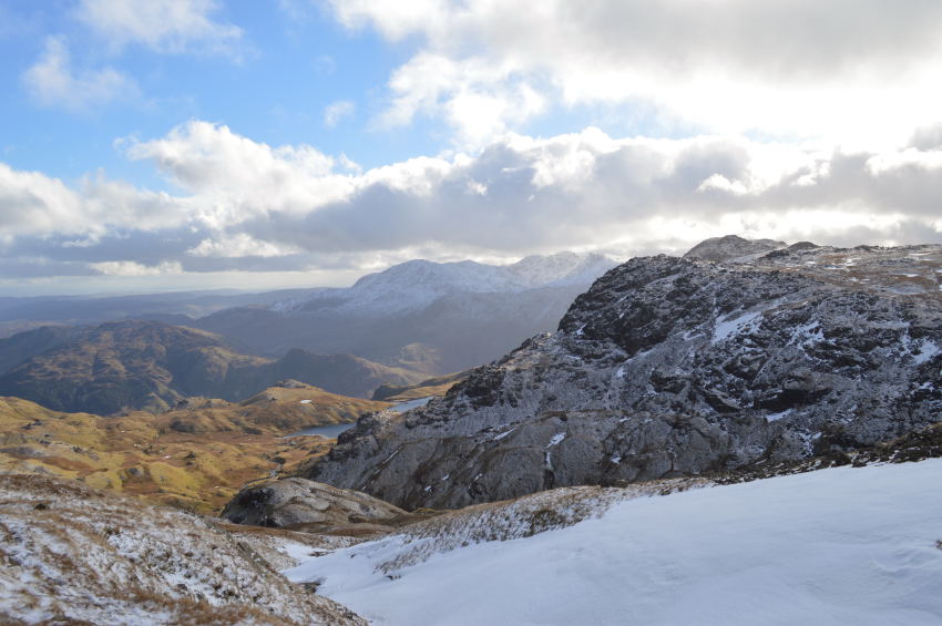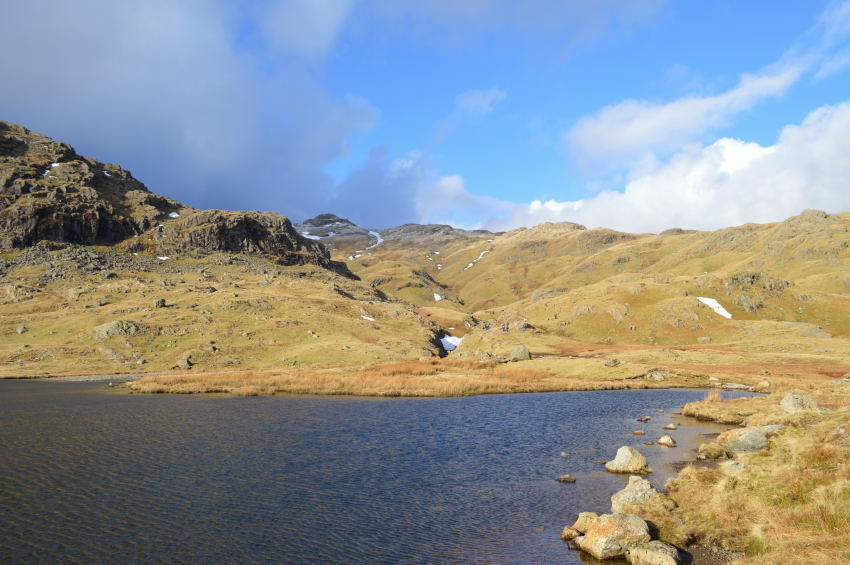 With commanding views back over Blea Tarn, Pike O'Blisco & The Coniston Fells beyond. |