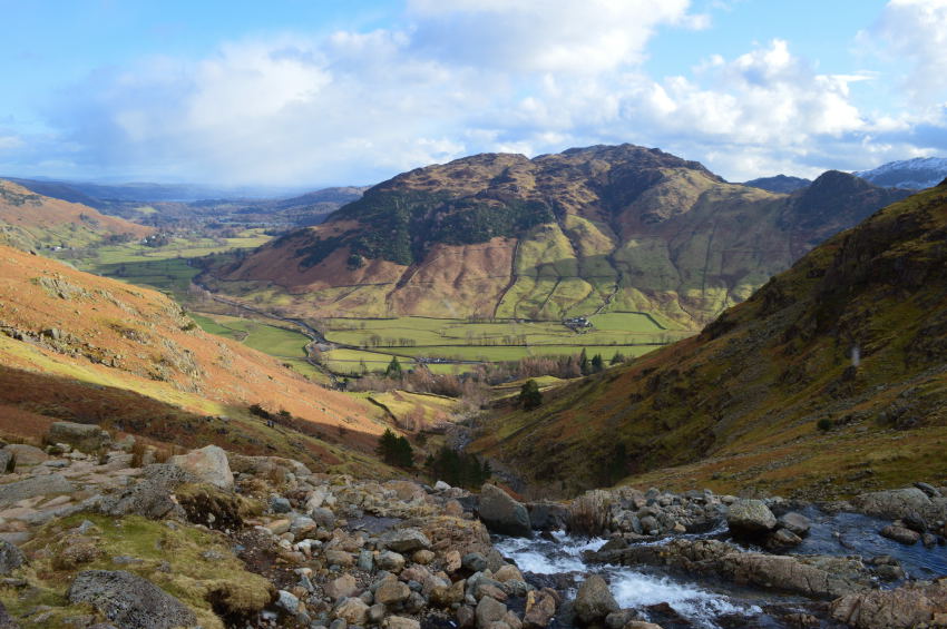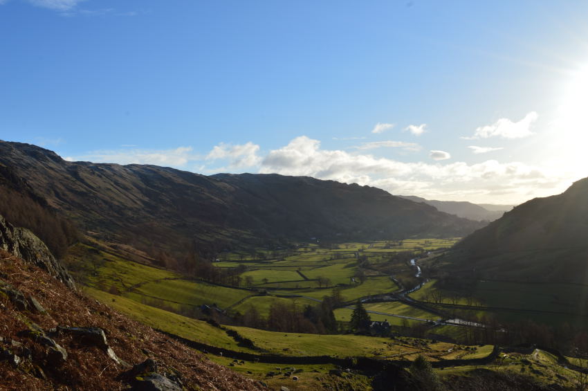 Here, rewarding views as I glance back over Great Langdale. |