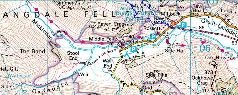 Great Langdale was reached shortly afterwards where I arrived at a deserted Stickle Barn car park choosing my parking space close to the entrance as I wanted to double back onto the road if not only to plot todays route onto Pike How, not by Stickle Ghyll but by Dungeon Ghyll.