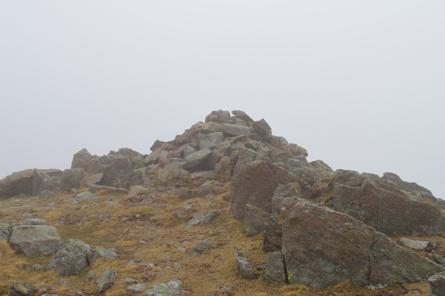 Shortly before arriving at Base Brown summit we passed a fell runner who was on his way down, back then we had clear skies above out heads as we passed comment on what such a lovely morning it was turning out to be, I think it was at that exact moment we cursed ourselves & the fell side as we arrive at our third two thousander, under a blanket of cloud.