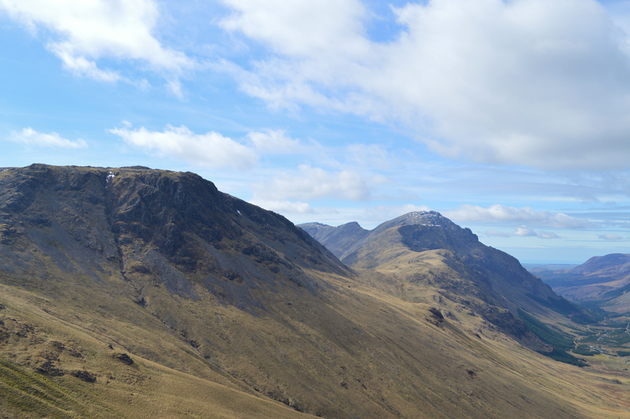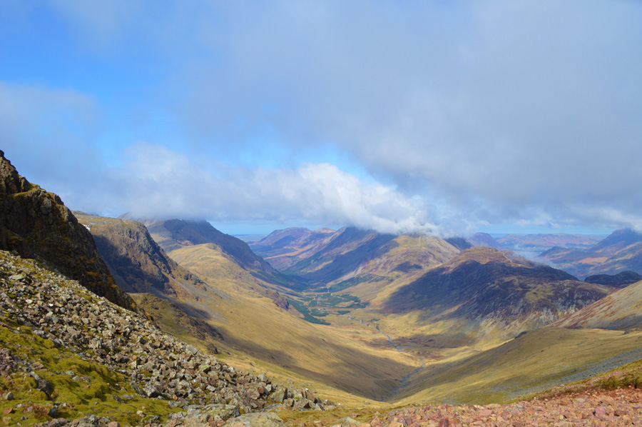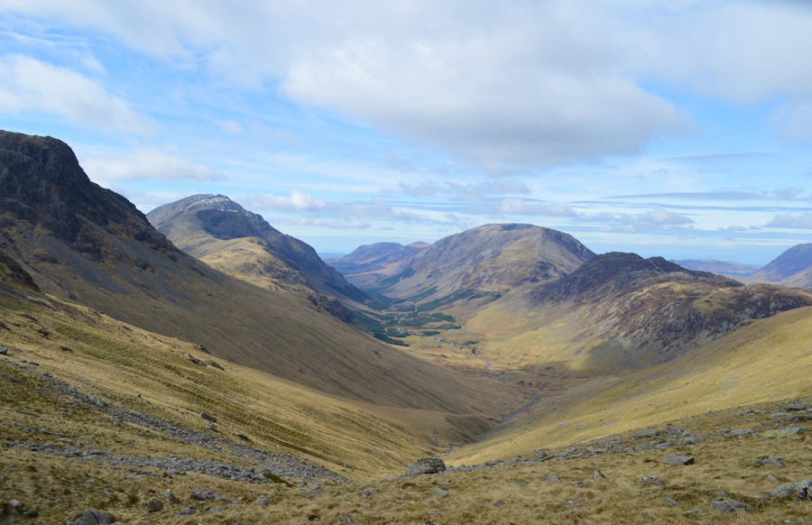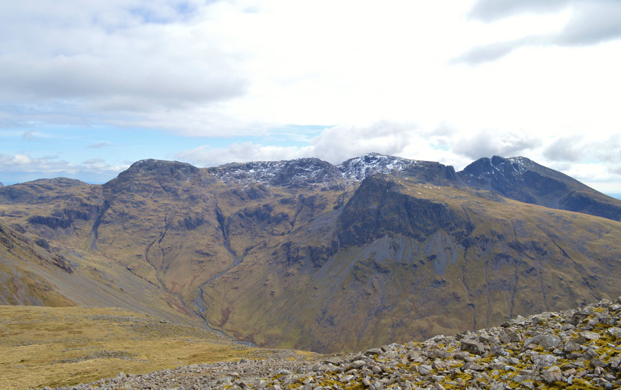 Here we have commanding views over the Corridor Route while Great End, Broad Crag, Lingmell & the Scafells tower above. |