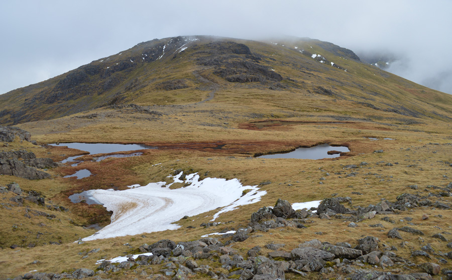 Looking back over Beck Head & Beck Head Tarn(s) towards Kirk Fell. |