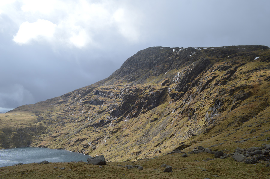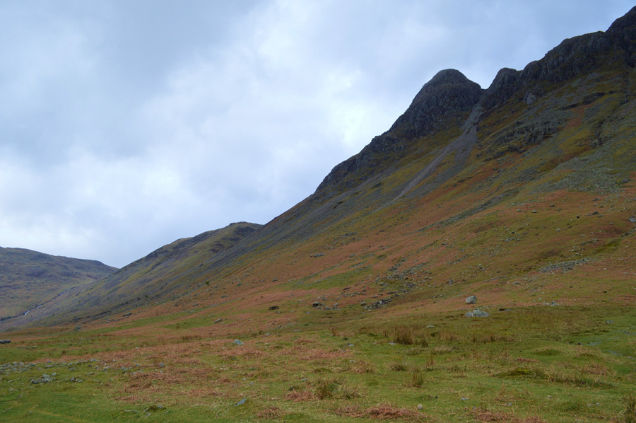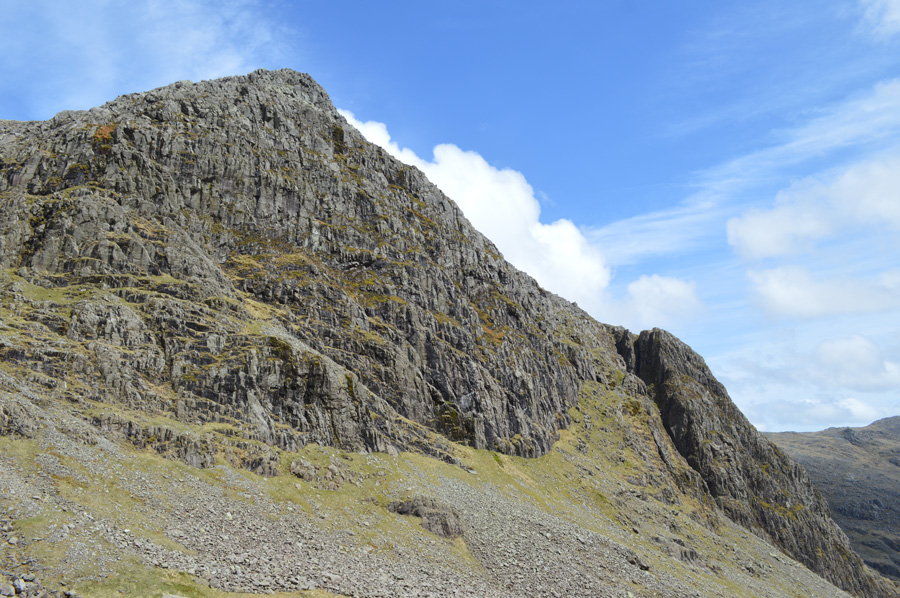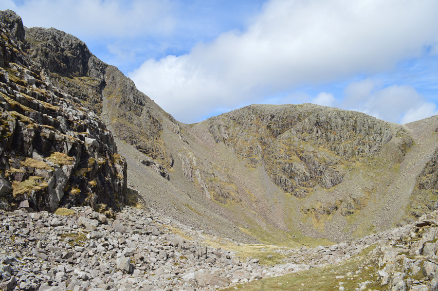 Rough Crag and the scree gully appears from Little Narrowcove. |