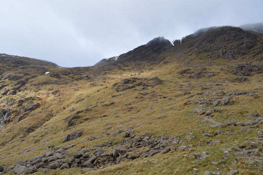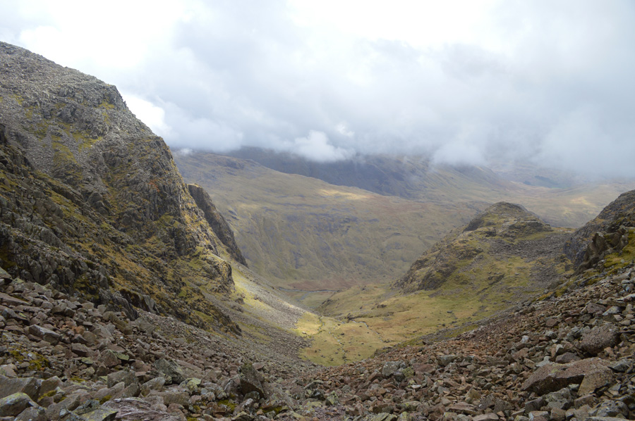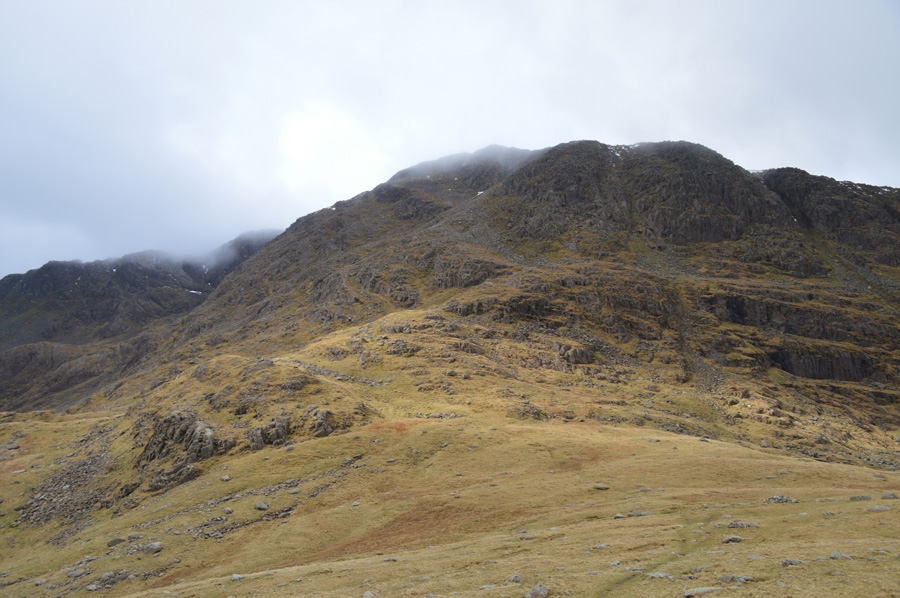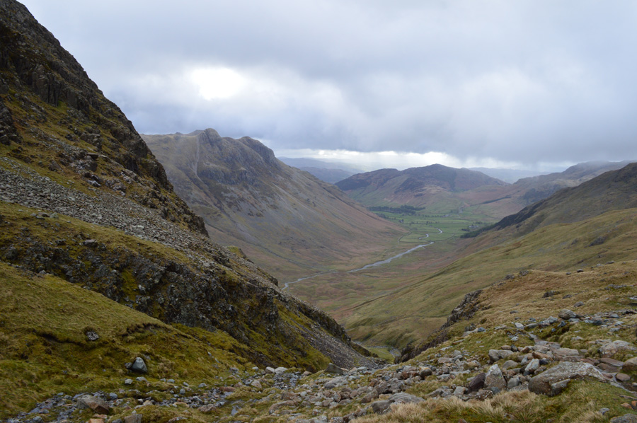 I guess you could say Mickleden didnt take too much away as I hastily passed through the valley flanked by the Langdales on one side, and The Band on the other, my concentration was taken up by that niggling plan B circulating around my head and the ever increasing wind that every once in a while howled down from the top of Rossett Gill.