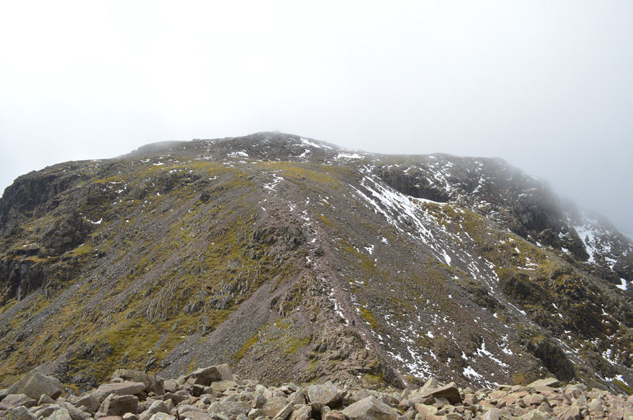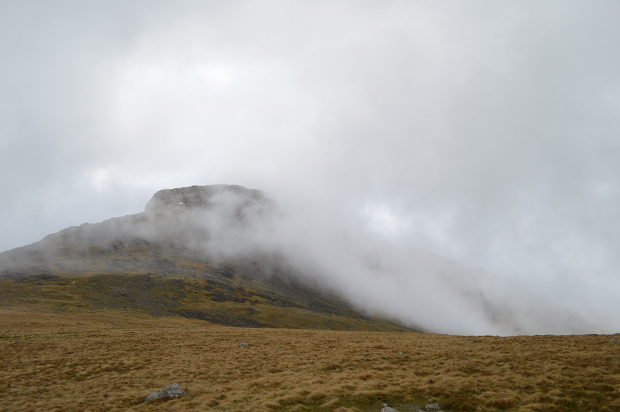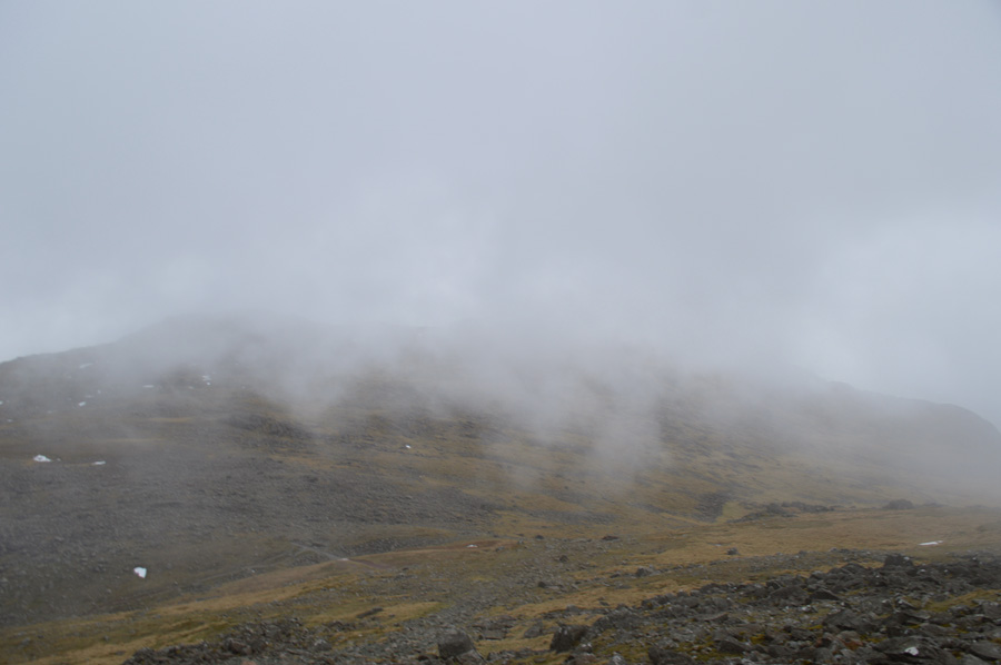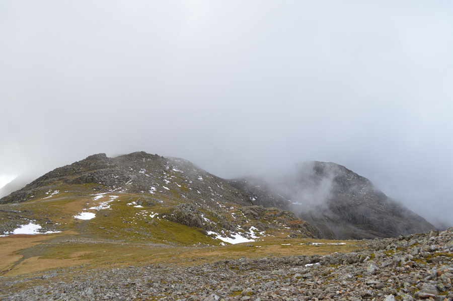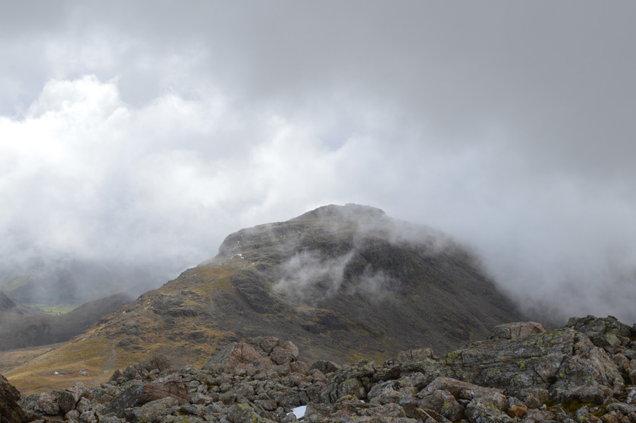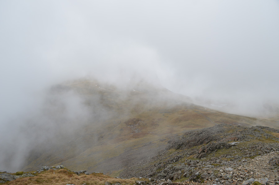 Bow Fell from my Esk Pike ascent, the cloud makes the fell almost unrecognisable. |