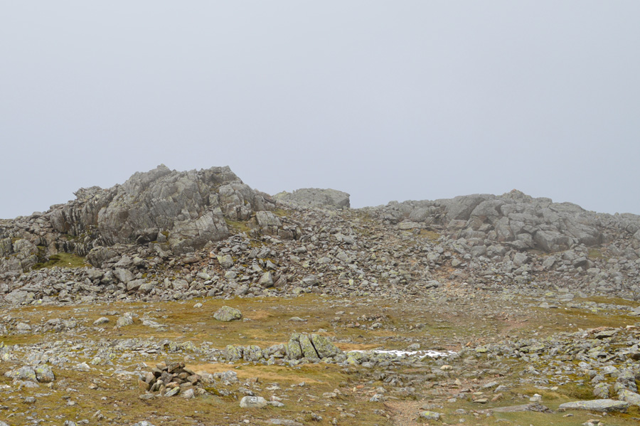 Oddly enough the wind had subsided on route to Ill Crag leaving a calm eerie feeling across the summit plateau. |