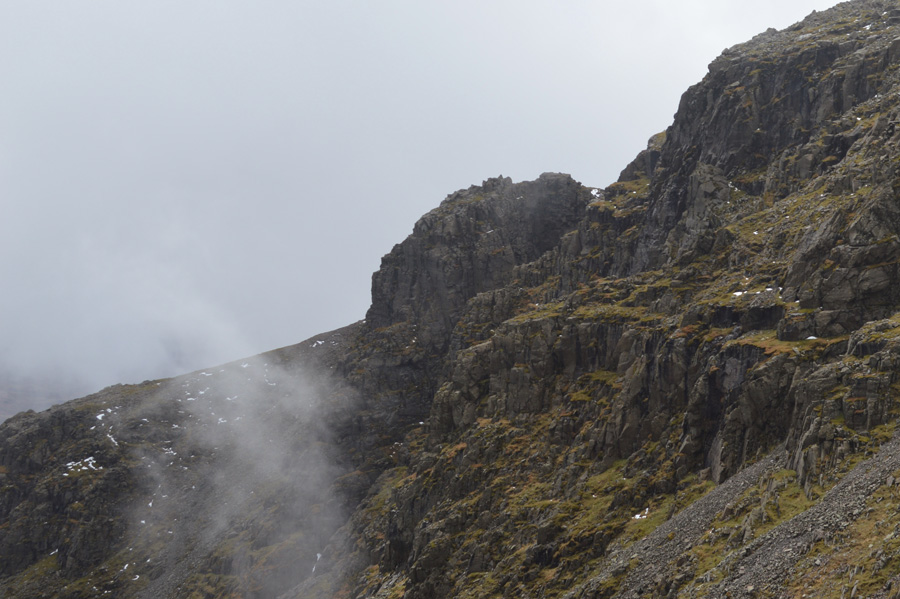 On route to Ill Crag as the cloud once again, rolls over the ridge. |
