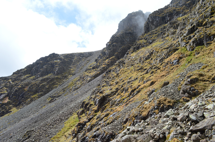 After leading my way across the grassy ledges I eventually found myself looking up the steep scree gully and indeed, the intimidating Rough Crag, it is un clear although I suspect that Harry and Robin used the scree slope on the 'other side' of Rough Crag which I now find myself on the wrong side of due to maintaining the valuable height that I simply couldn't afford to lose.