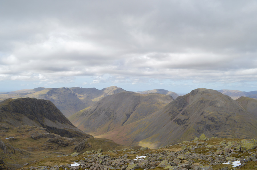 Scafell Pike, Rough Crag, Broad Crag Col, Little Narrowcove and of course Broad Crag seen shortly before arriving at Pen summit. |