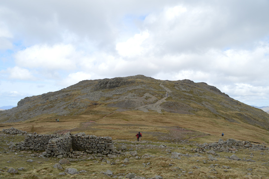 I familiarise myself with the path that leads towards the top of Ore Gap which although rough, climbs steadily towards the grassy plateau between Bow Fell and Esk Pike.