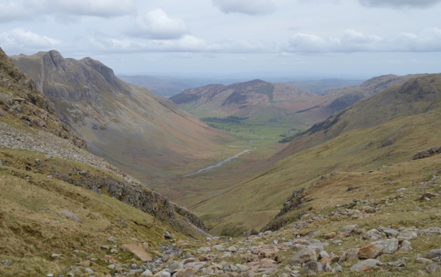 Here, glancing back over Mickleden before I start my ascent on Rossett Pike, ahead, Side Pike and Lingmoor Fell. |