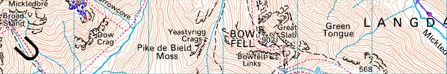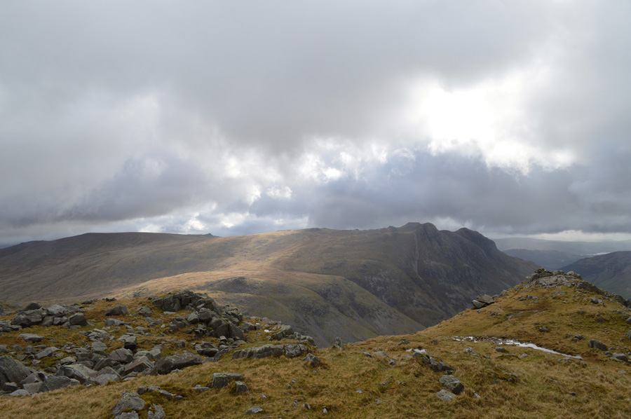Views of Bow Fell, The Great Slab and Hanging Knotts. |