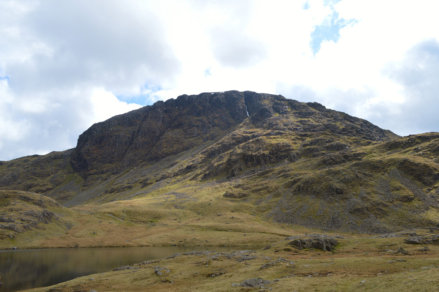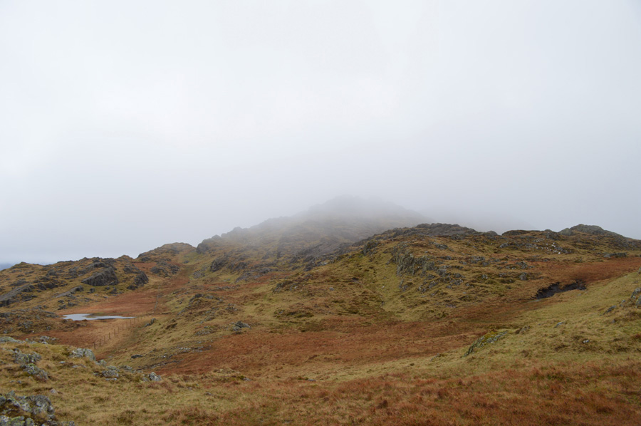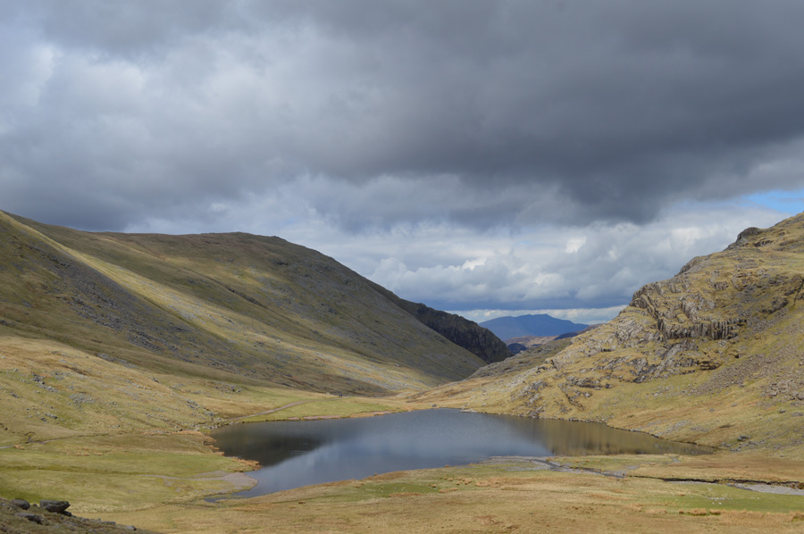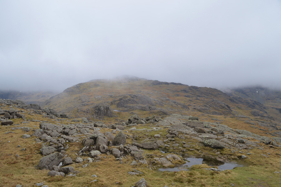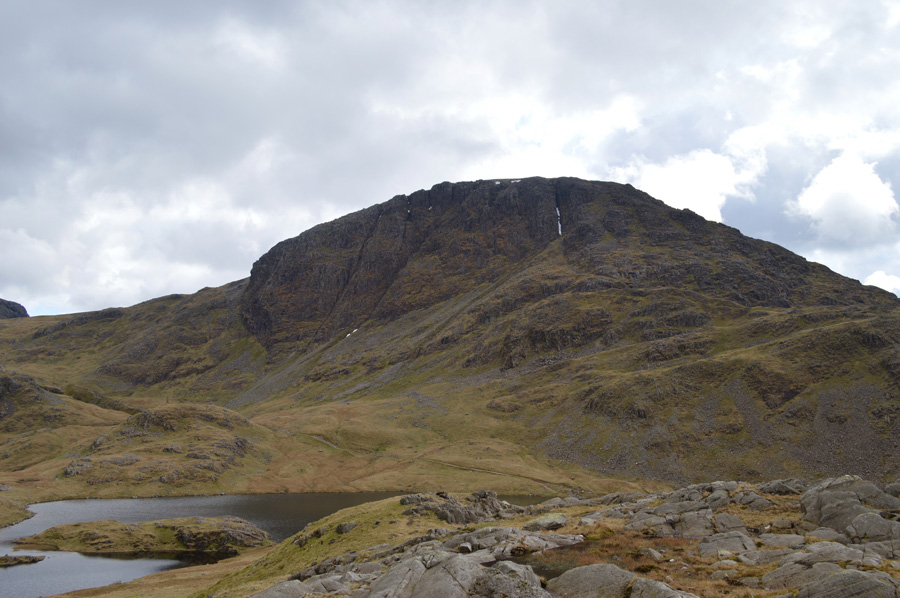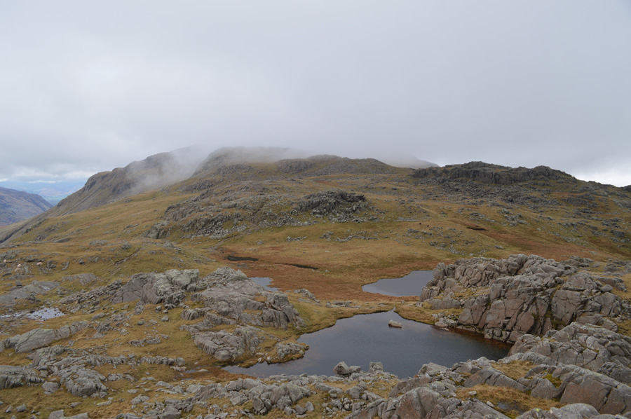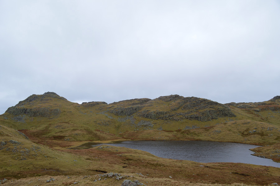 Our next two thousand foot summit can be seen towering over High House Tarn in the centre of the photo. |