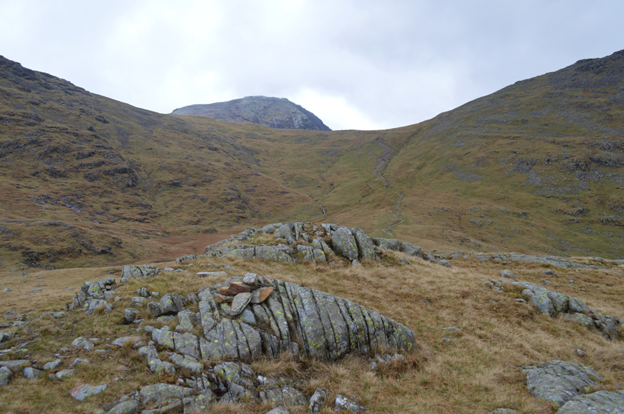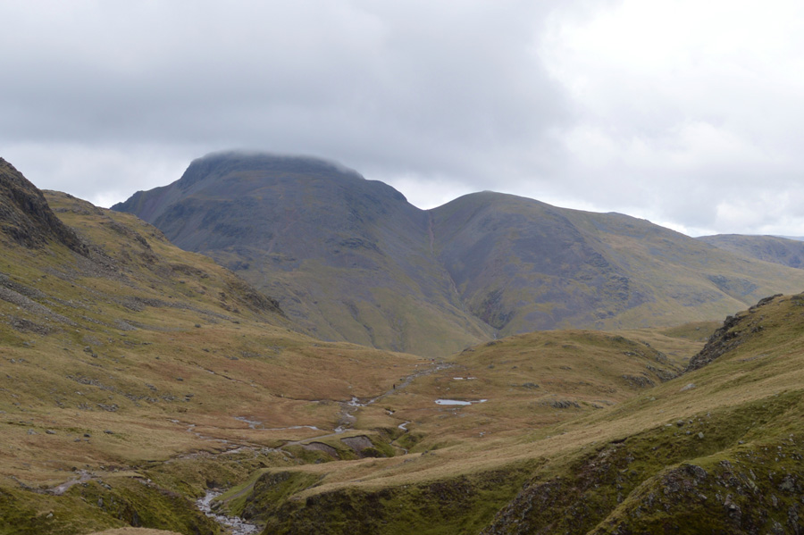 The Gables and Aaron Slack under clear skies as we make our descent on Styhead Tarn. |