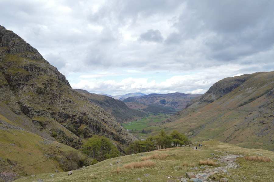 The first signs of the cloud lifting was when we glanced back over Borrowdale, which showed the smallest of promise. |