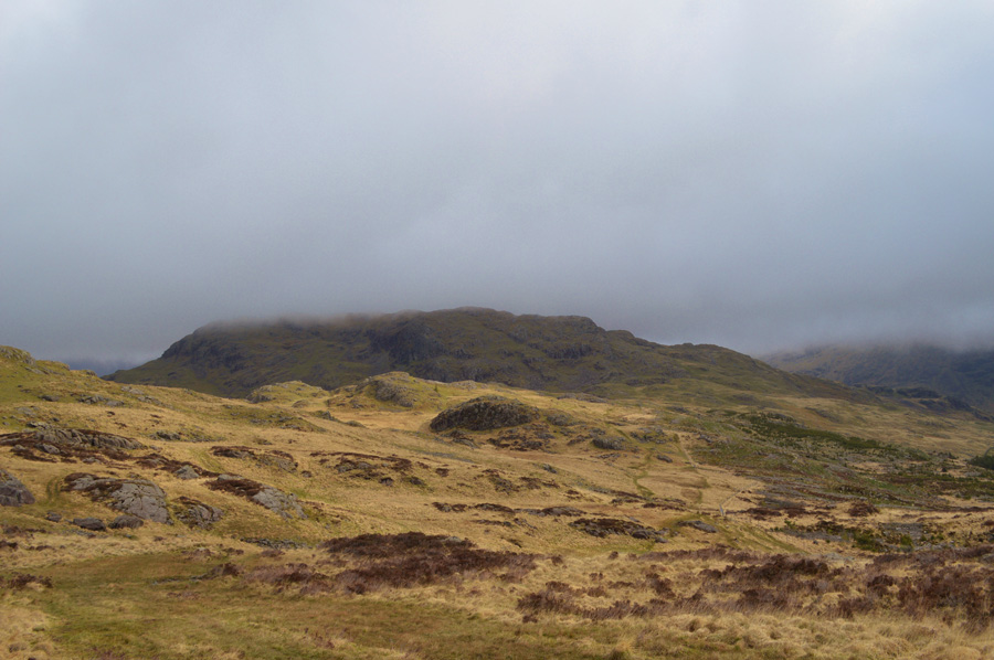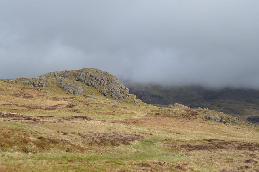 Descent on Harter Fell with Deeming Crag now on my left flank. |