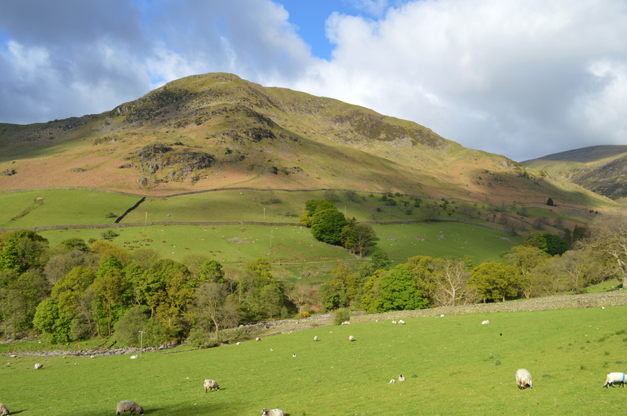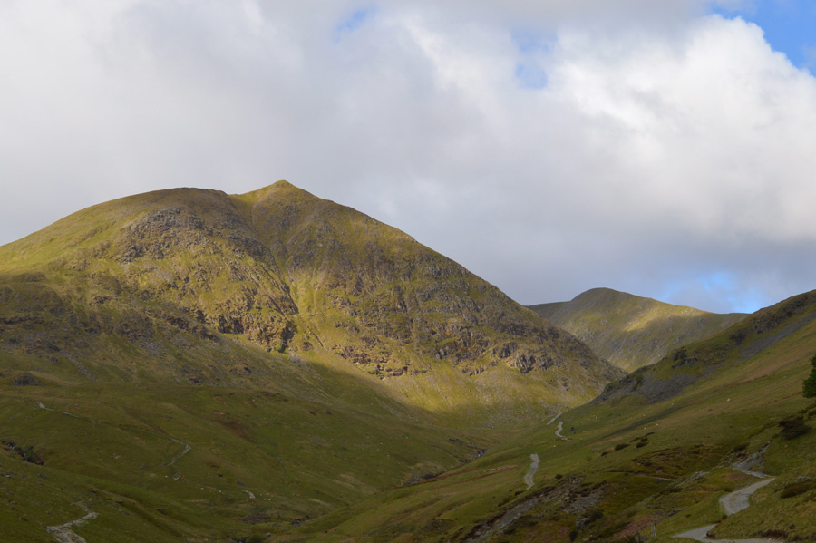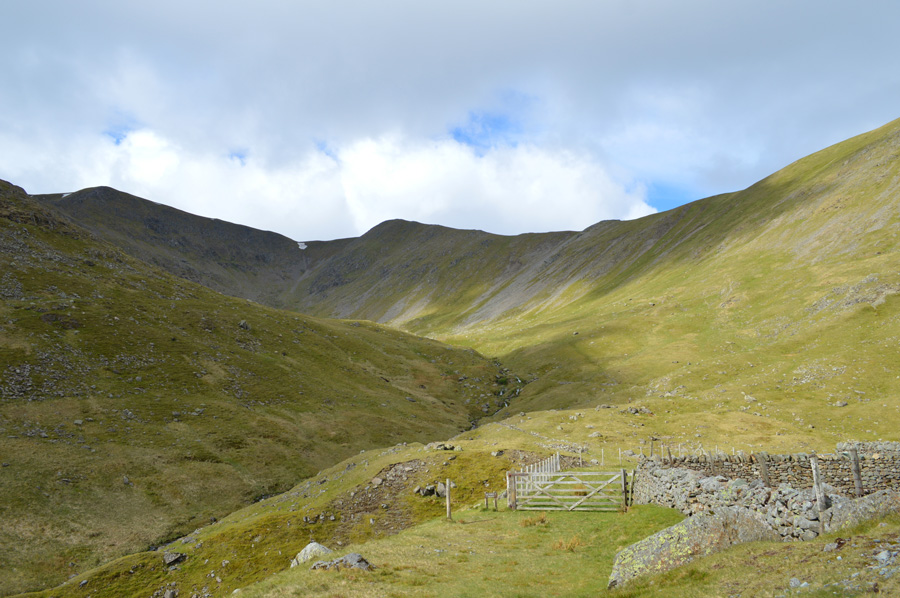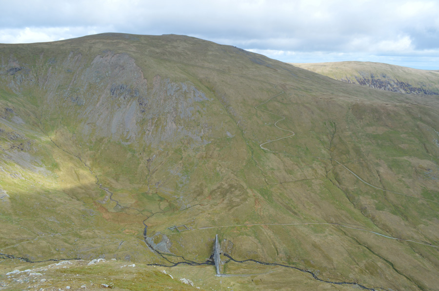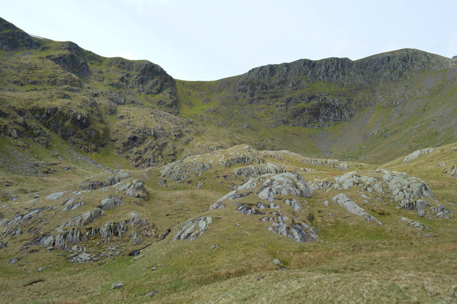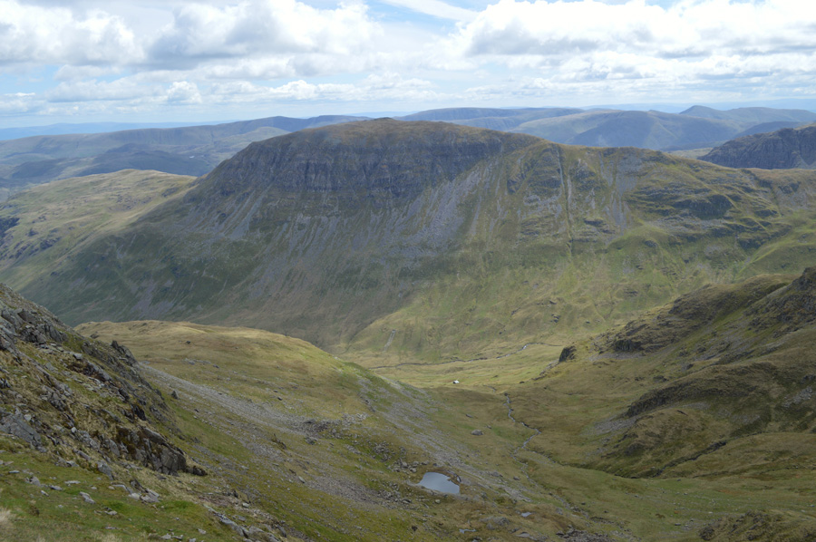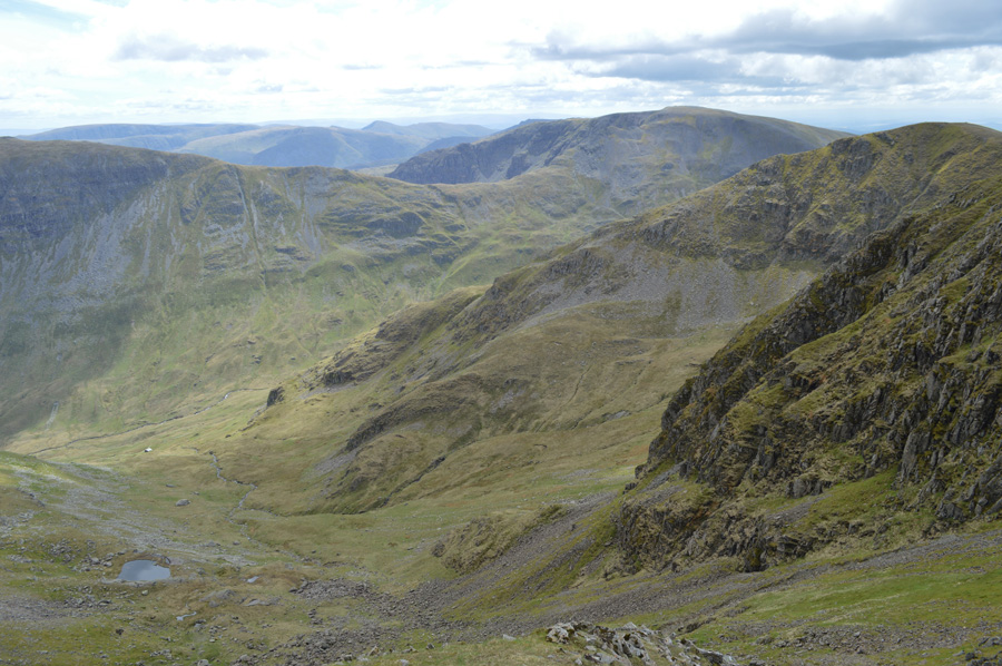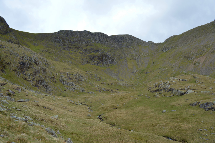 Dollywaggon Pike seen over Ruthwaite Cove after descending High Crag. |