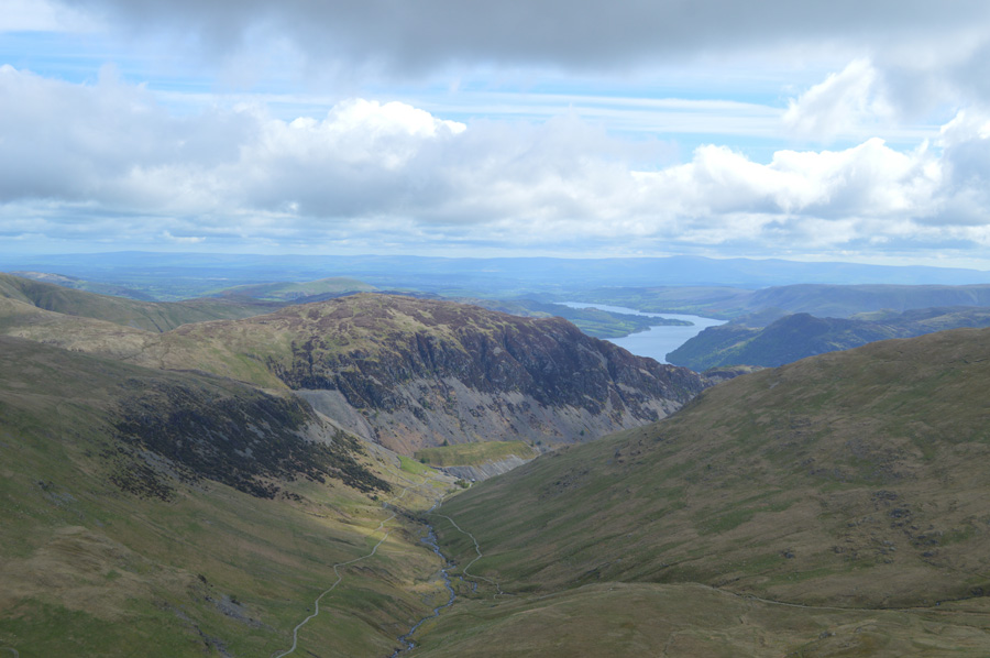 Distant views of Ullswater, Birkhouse Moor and Sheffield Pike. |