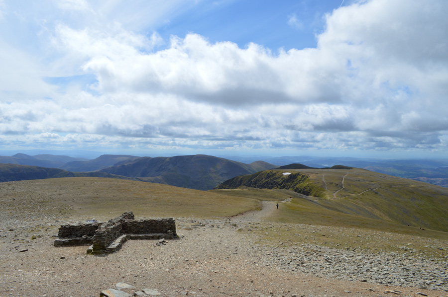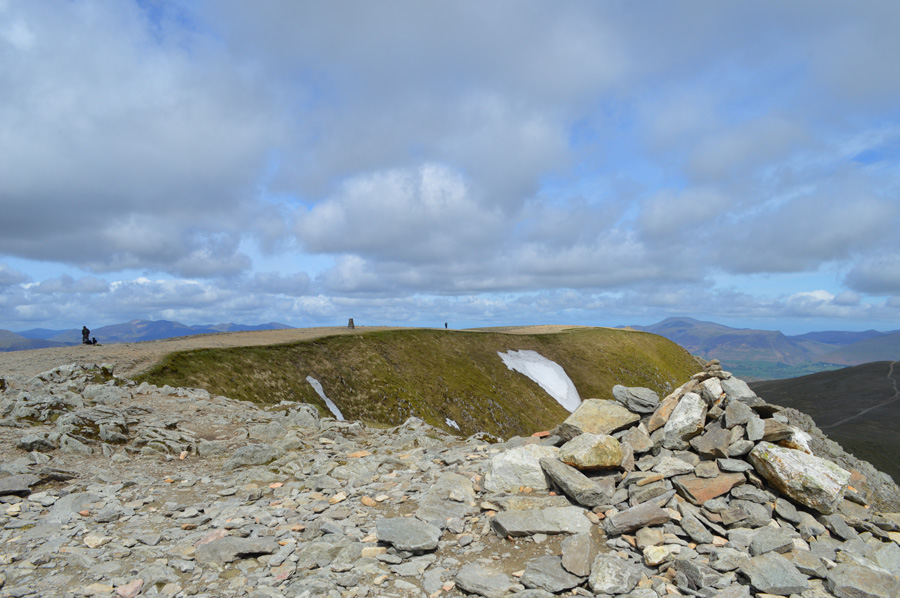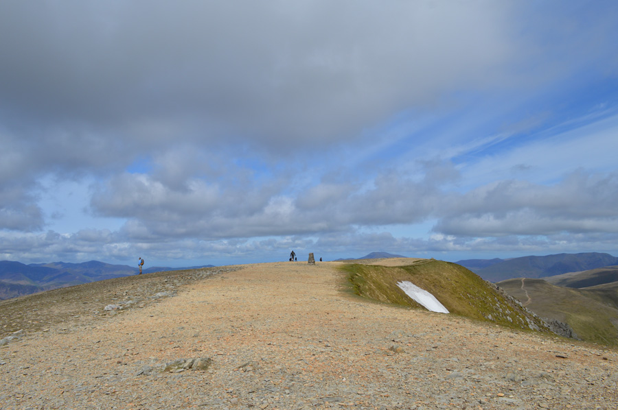 Looking back at Helvellyn's trig point as we head for the main summit cairn. |