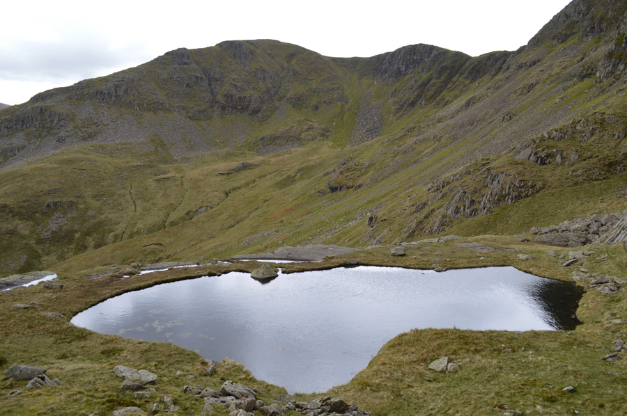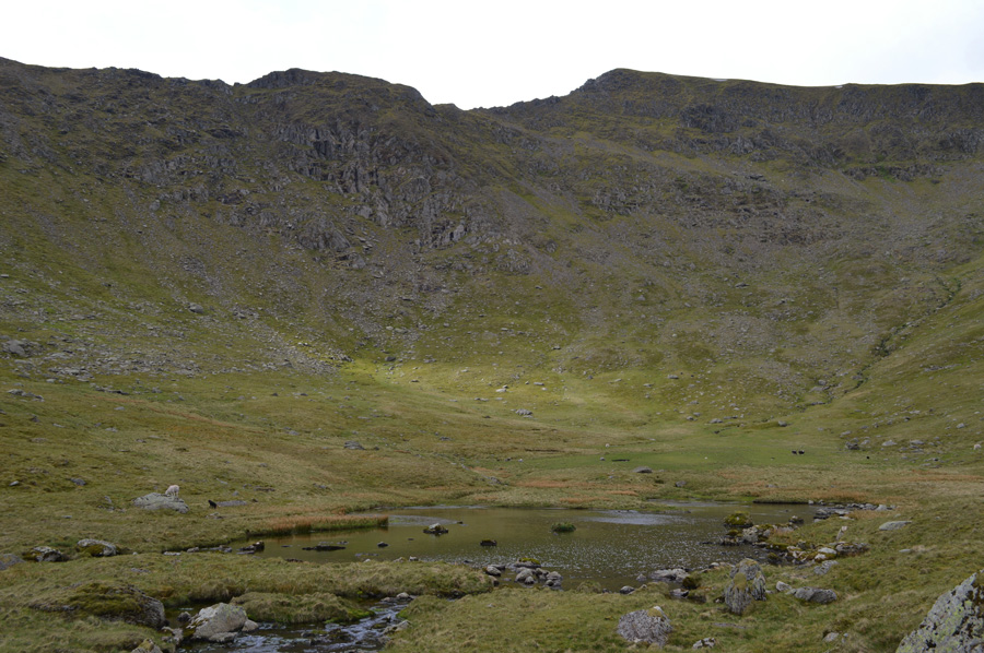 As we round our way over the ridge views again open out onto Hard Tarn, here we pause again to evaluate our route, as you can see in the photo, gaining Hard Tarn from within Ruthwaite Cove is much steeper than it looked previously, with this, we stick to our original plan. |