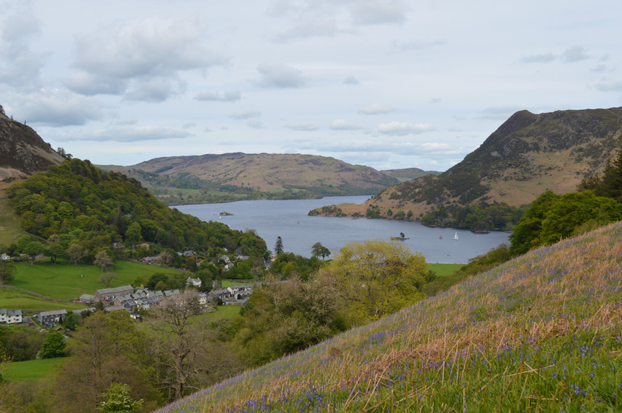 Blue Bells line the fellside as our views extend over Glenridding, Gowbarrow Fell and Ullswater. |