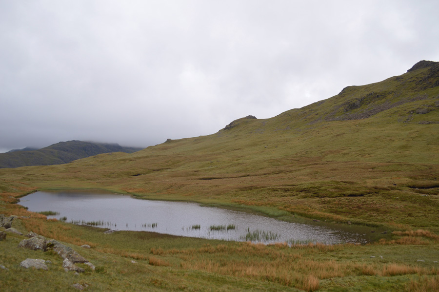 Joking aside I am in good form for the climb ahead which I ascend only stopping once to get a view over Three Tarns, seeing as this was to no avail I persevere passing walkers heading down from Bowfell dressed head to toe in Waterproofs I had to wonder did they think had I come unprepared, or simply too motivated to stop to add more layers.