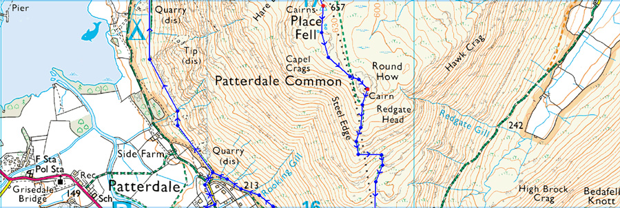 Patterdale - Above Side Farm - Grey Crag - The Knight - Place Fell - Round How - Steel Edge - Boredale Hause - Rooking - Patterdale |