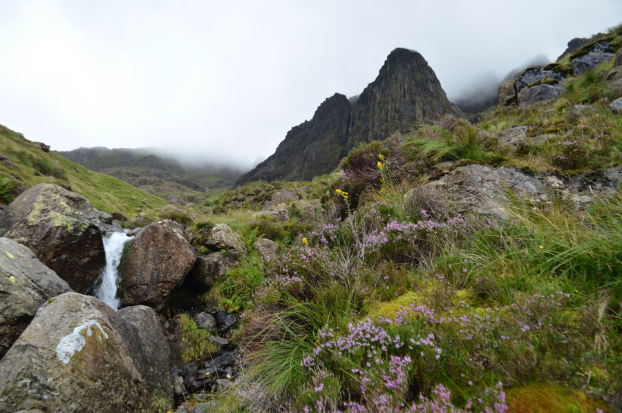 The rain continued to pour but again I seeked out shelter within the crags of the rock from where I found myself a dry boulder which would act as my dining chair. With a contributory to Pillarcove Beck behind me which fell in numerous waterfalls it was there I sat down to eat a well earned lunch, gazing over Pillar Cove just watching the rain fall...