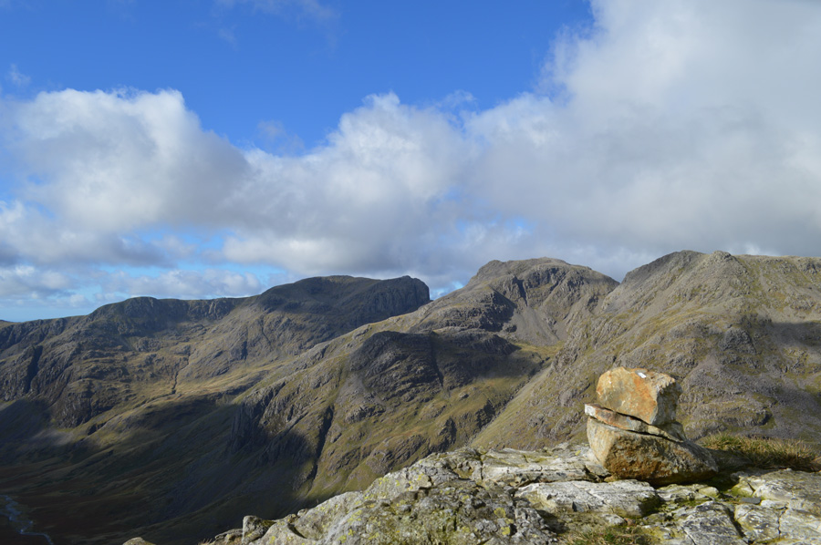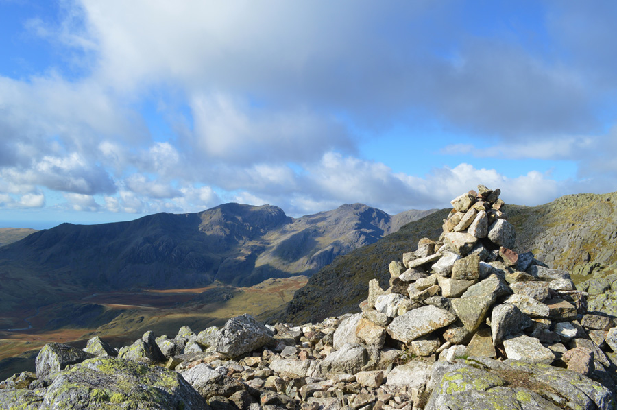 The Scafells and III Crag from Hanging Knotts summit cairn. |