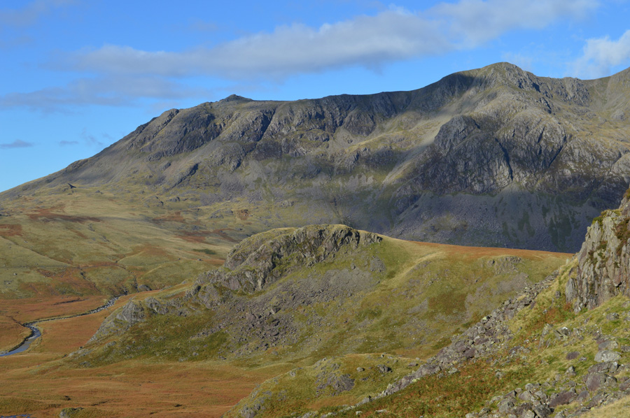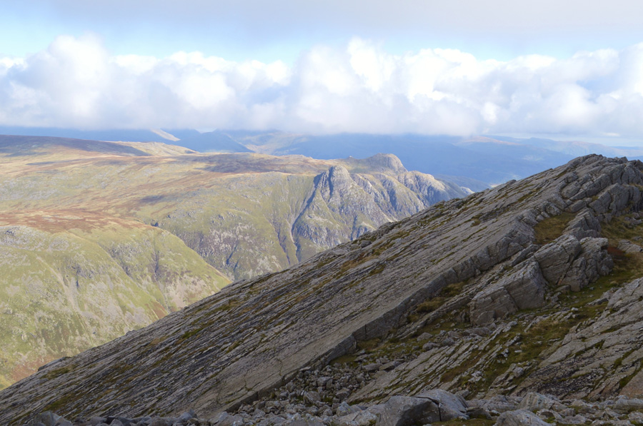Views over Scafell Pike seen with Little Narrowcove and III Crag from High Gait Crags. |