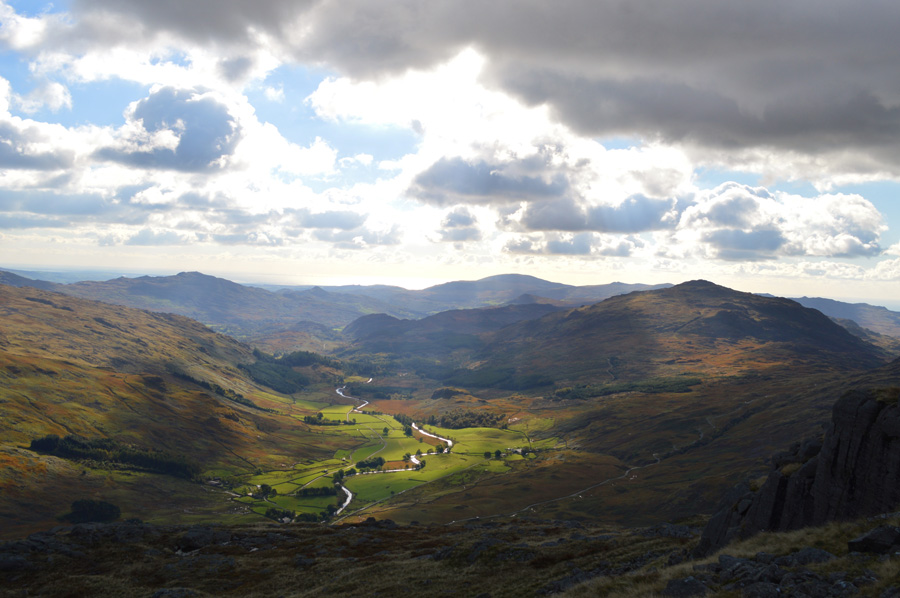 Views over Harter Fell (Eskdale) the Dunnerdale Fells, and the Eskdale Valley. |