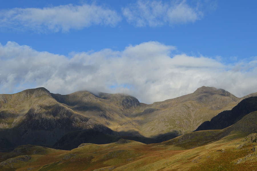 Bowfell and the Yeastyrigg Crags ridge High Gait Crags. |