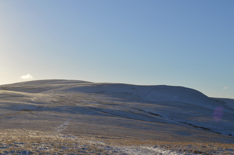 I have always found it fascinating how snow can distinguish an otherwise faint path, here you can see a track that flanks the summit of Great Ska Fell, most possibly used as an alternative to the steeper direct path. |