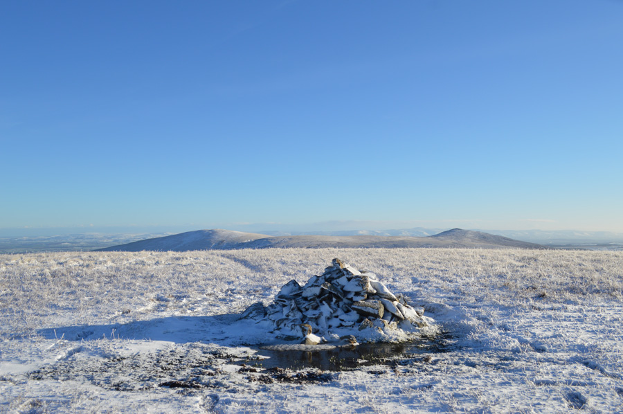 You can see the path that we had used to cross the top of Charleton Gill over in the lower right of the photo as we now take the snow covered path towards Great Sca Fell seen in the centre.
