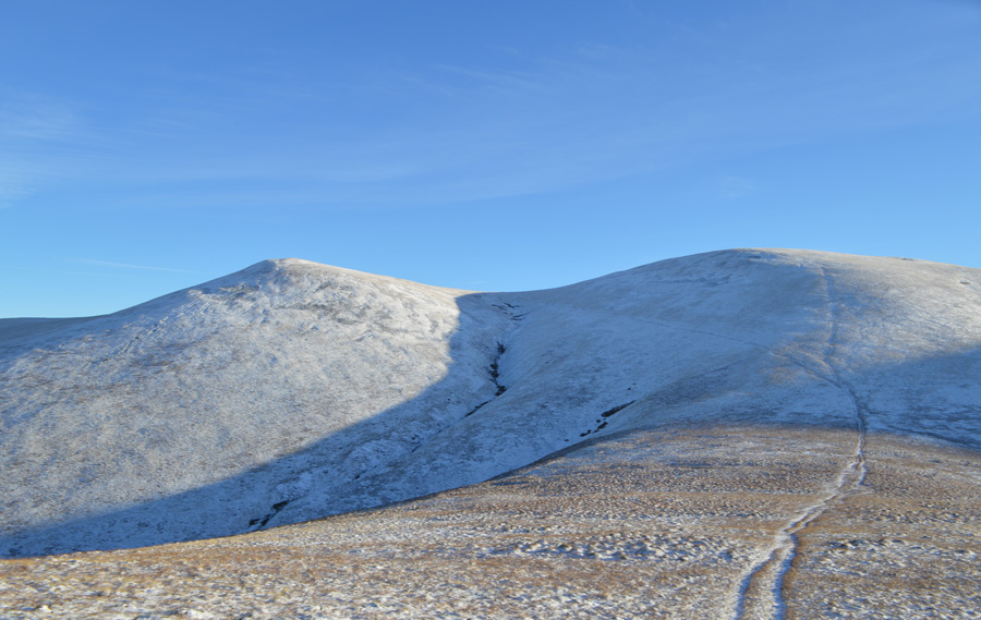 Had we have chosen to summit Knott today, the path you see in the lower left of the photo would have been the one we would use to descend Burn Todd by, just another case of how the snow can highlight the less trodden paths. |