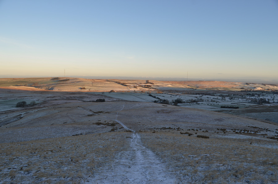 Every now and again we would stop to witness the morning light slowly starting to spread across the fields below, with distant views over the Solway Firth and the Scottish Hills. |