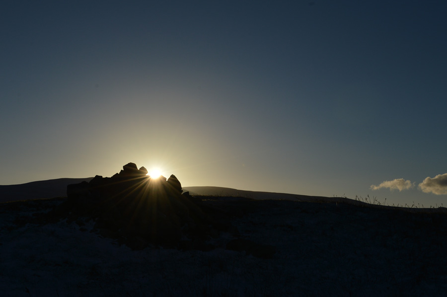 In conversation we sooned arrived at Longlands Fell summit cairn, it was from the summit did we first witness the sun as it rose above a distant Blencathra which had been shielding much of its light up until now. We were now exposed to the summit winds which felt raw on exposed skin which made me feel extra thankful for my gloves and beanie hat I was wearing, on the other hand the man who doesn't feel the cold chose not to wear his hat, nor jacket for that matter, I just don't know how he does it. |