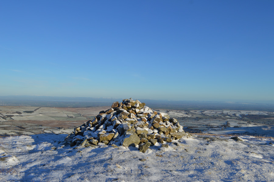 Despite the cold we hung around our second summit if only to take in our brilliant panorama, with walking poles 'dug in' we stood sometimes silently taking in views of our route ahead and the distant snow covered peaks of the Pennine Hills, it sure was a grand day to be out fell walking. |