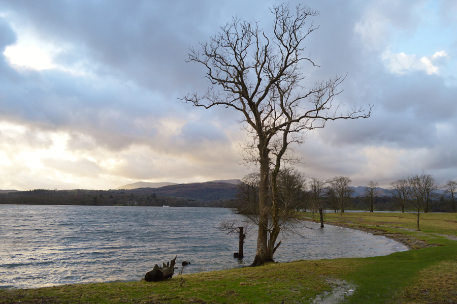 I soon arrive at Jenkins Field, a National Trust hot spot which I always glance over from the car as I drive along the A591. Sadly the field is recovering from flooding which is extreamly sodden underfoot, if you look around the edge of the bay and then out towards the debris field left behind from retreating flood waters which at its most, is a good fifty feet away from where you seethe shoreline today. Ahead is Waterhead and Ambleside Pier. |