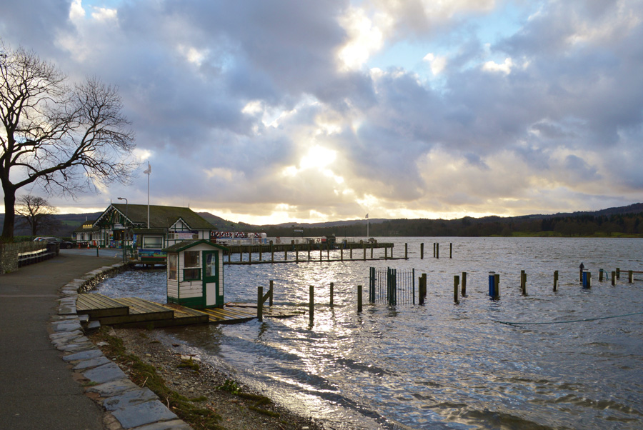 Although it was only approaching mid afternoon if felt much later by the time I was ready to head back into Ambleside, what usually is a tourist hot spot was almost deserted only for myself and an elderly couple who were taking photos, I stride out passing Waterhead Carpark which is still submerged under a foot of water, only a coach had braved the flooding and was parked up at the far side of the car park with its engine running. Instead of heading back to the A591 where the road is narrow I take the back streets back to Ambleside only passing half a dozen people in doing so. The Bridge House is passed under Christmas lights as people fill the streets buying last minute gifts.
