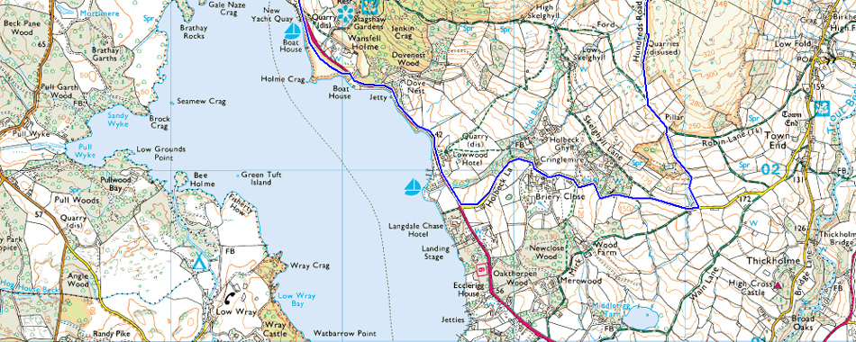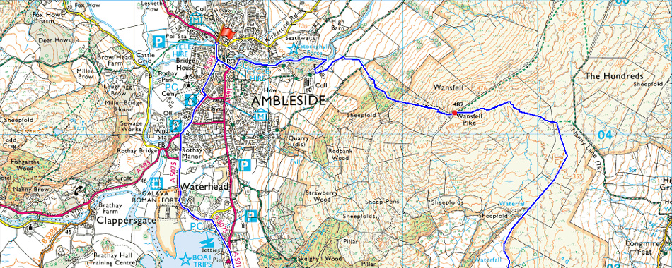 Ambleside – Stockghyll Lane - Stockghyll Force Wansfell Pike – Hundreds Road - Robin Lane - Martins Wood - Holbeck Lane - A591 - Waterhead - Ambleside |