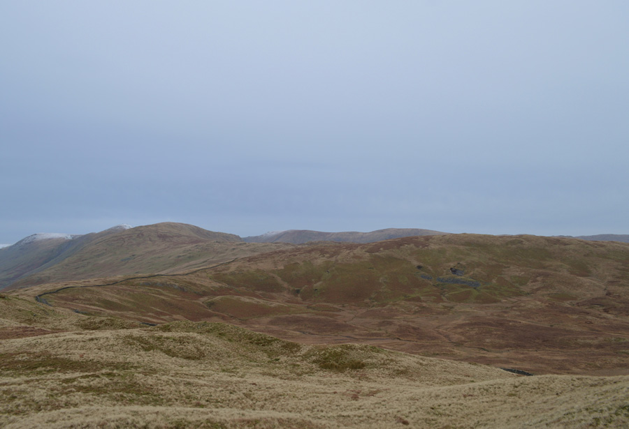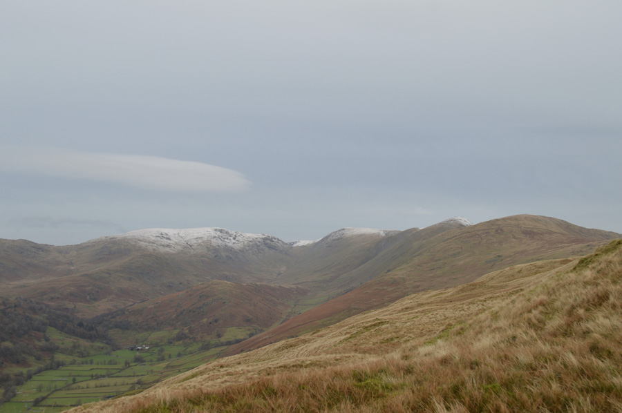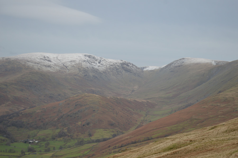 The Tongue, Caudale Moor, Threshthwaite Mouth, Thornthwaite Crag and the III Bell ridge. |