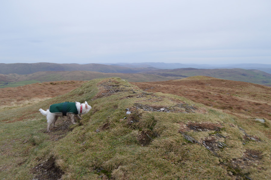 It's only a short pull from Moor Head that leads towards Sallows summit, views of the III Bell ridge are long gone with only the bulk of Yoke now in sight, I again scour for movement along the Garburn Pass for someone perhaps like myself, wishing to bring the New Year on the fells but spot nothing which was less than what Holly thinks she can see and certainly smell.