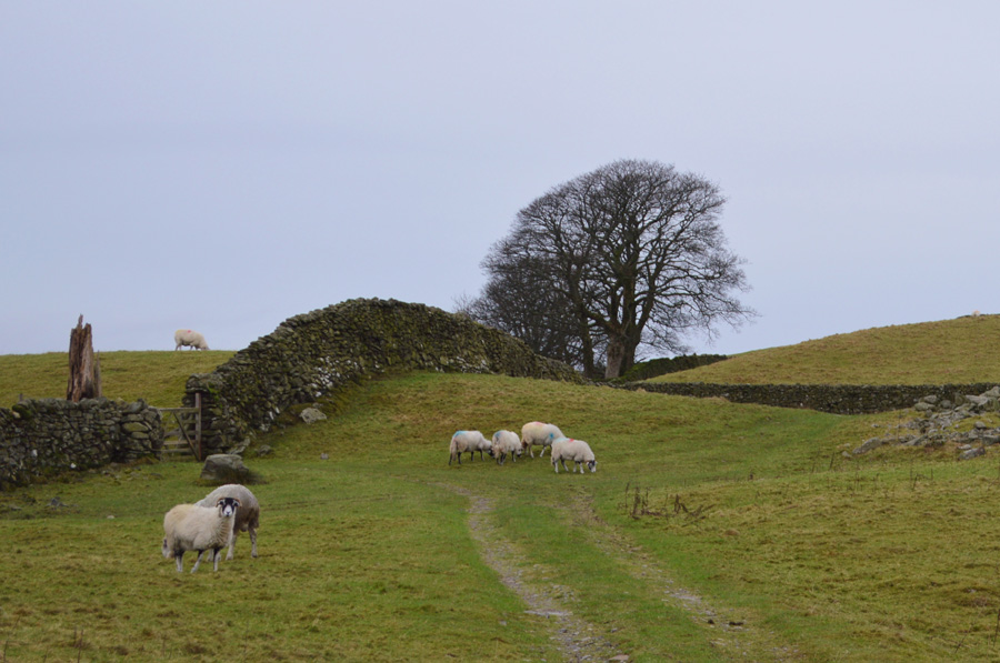 I soon pick up a track again via Long Crag with sights in the distance of the Kentmere to Ings Bridleway but first before reaching the Bridleway I will pick up a farmers track before crossing a green pasture which is full of sheep, time to get Holly's lead out as she is still unsure about sheep at the moment. |