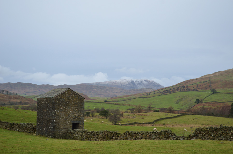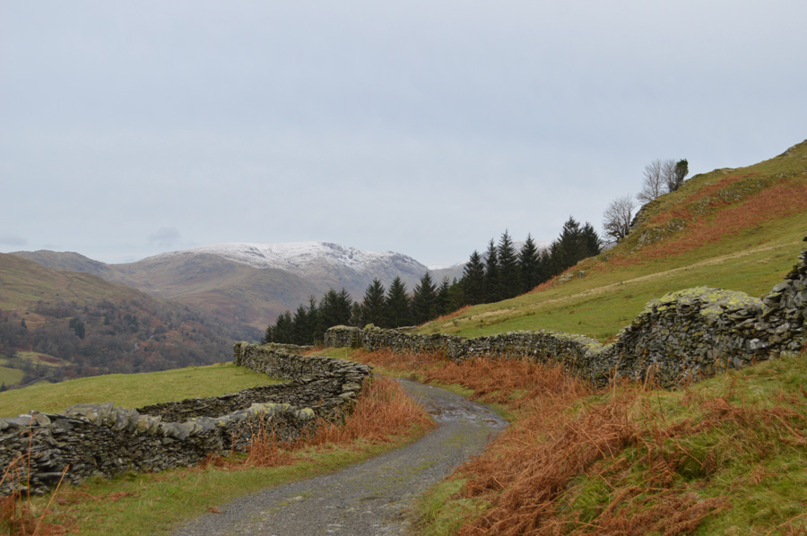 Red Screes and the Snarker Pike ridge from Barrons Lane. |