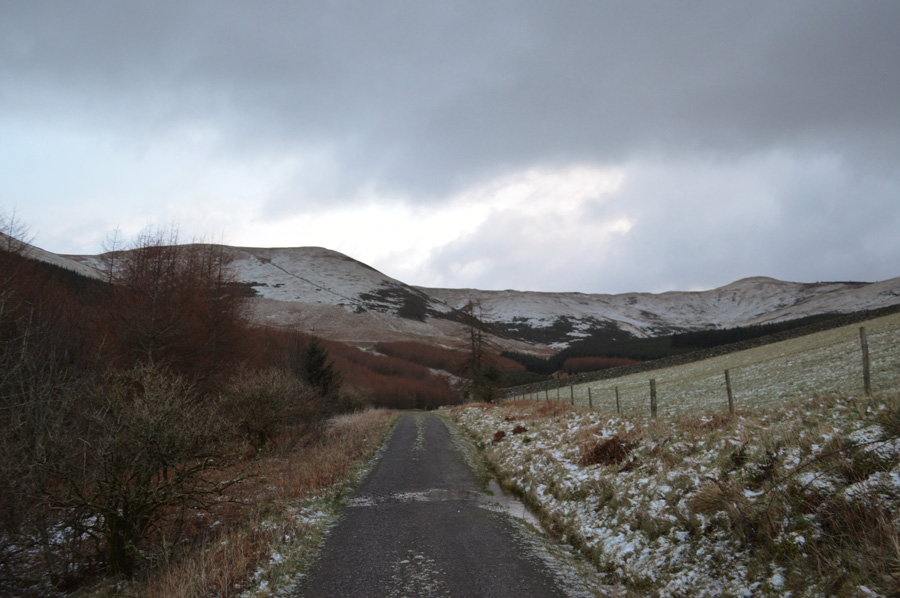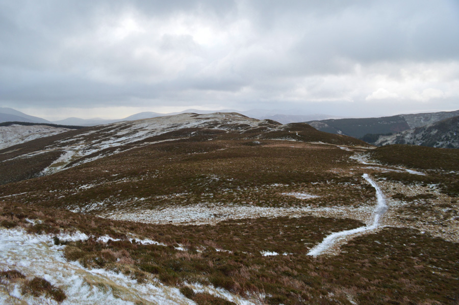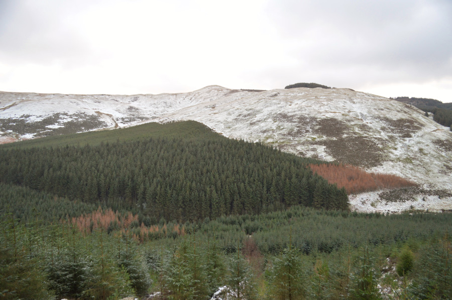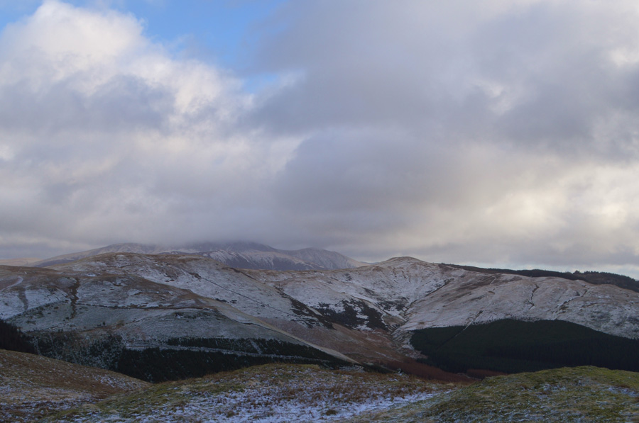 In the other direction we find the snow covered summit of Lord's Seat. |